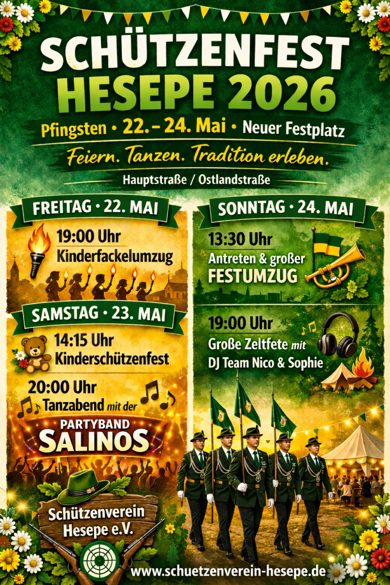„Schützenverein Hesepe e.V. – seit 1897 Tradition erleben! Hier gibt’s alle News und Events auf einen Blick.“